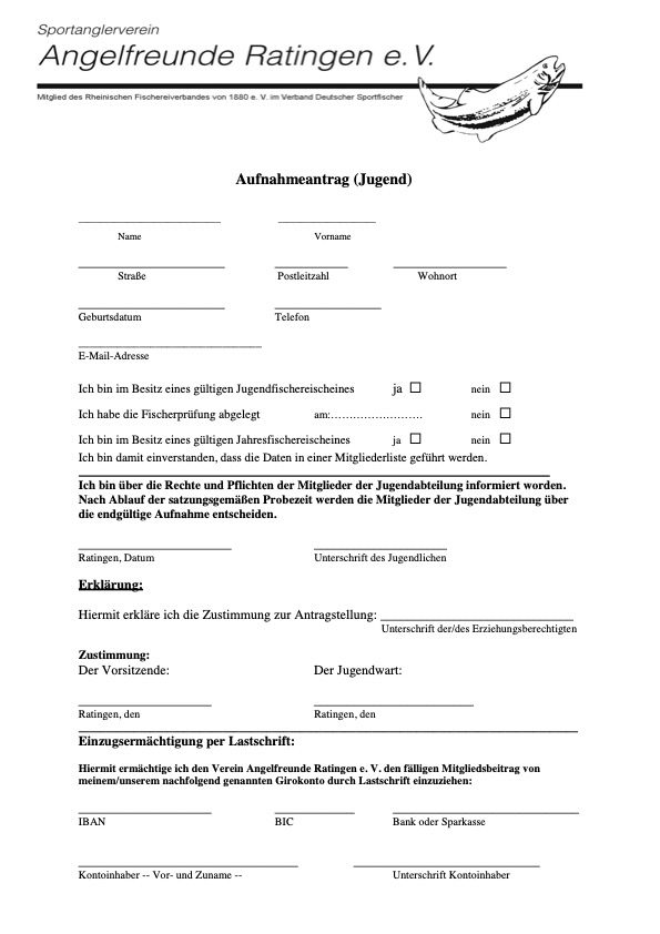 wir freuen uns, dass Du dich für unseren Verein Angelfreunde Ratingen e.V. interessierst.